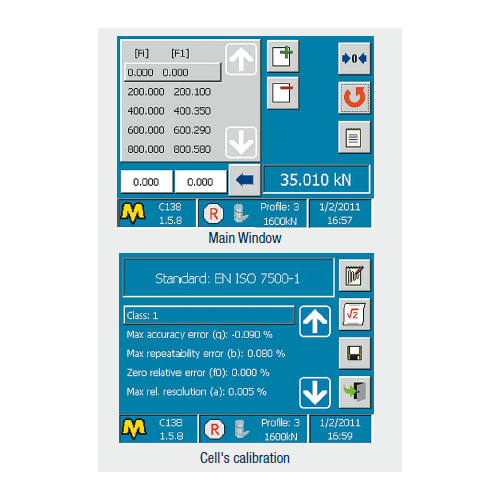 This user friendly menu driven digital display, connected to load cells allows to perform an accurate verification of the loads measured from machines under control and it allows to produce the corresponding certificate.