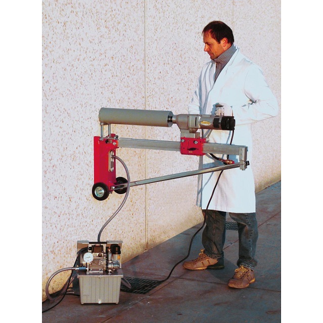 These drilling machines are extremely practical, lightweight and easy to use. The base is from aluminium alloy, the steel column can be tilted up to 45°, the motor support is fixed on a saddle sliding on teflon runner granting high performances. The motor incorporates a water swivel to cool the diamond bit. The machine is supplied complete, except for: diamond bit, spanner, core extractor to be ordered separately.