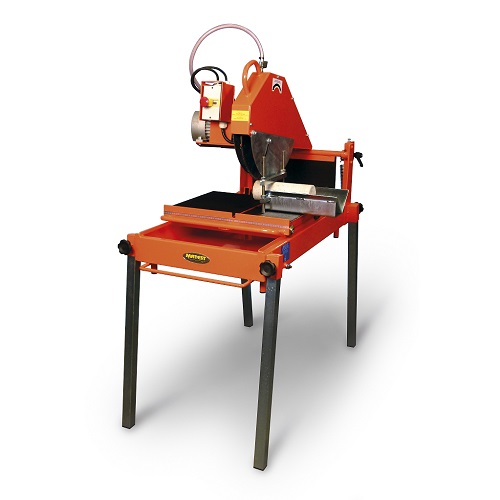 The machine is equipped of an electro-pump for water cooling, pedal guide for vertical cutting, safety device against breakage of blade.