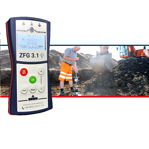 Облегченный дефлектометр ZFG 3.1 используется для определения модуля динамической деформации Evd в МПа [МН/м²] с помощью испытания на динамическую нагрузку плиты.